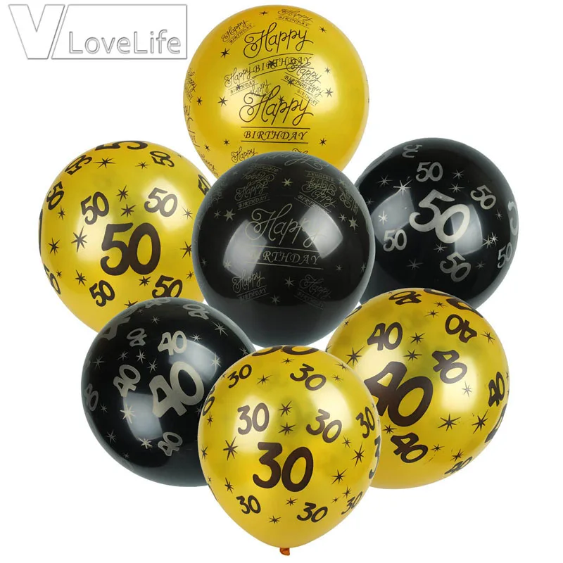 10p 12inch Gold Black 30th 40th 50th Happy Birthday Balloons