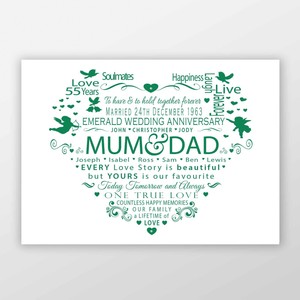 Personalised 55th Emerald Wedding Anniversary Print Parents