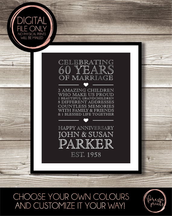 60 Year Wedding Anniversary Digital Print 60th Anniversary Etsy