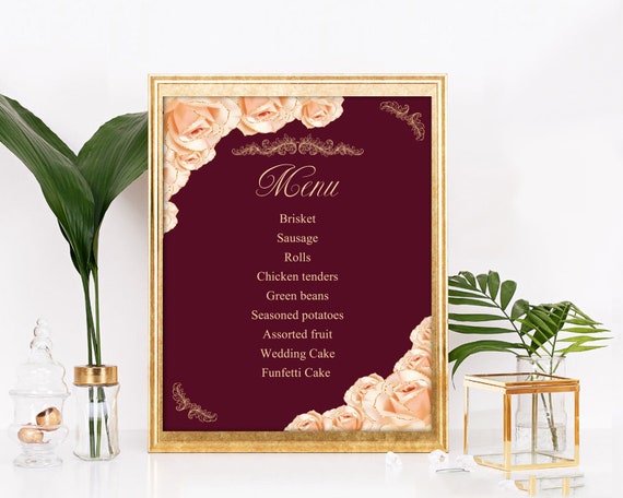 Menu Wedding Sign Burgundy Rose Gold And Silver Menu Poster Etsy