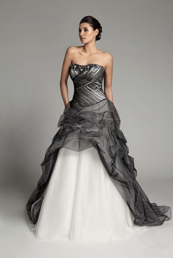New Empire Colorful Wedding Dress Gothic Black And White Draped