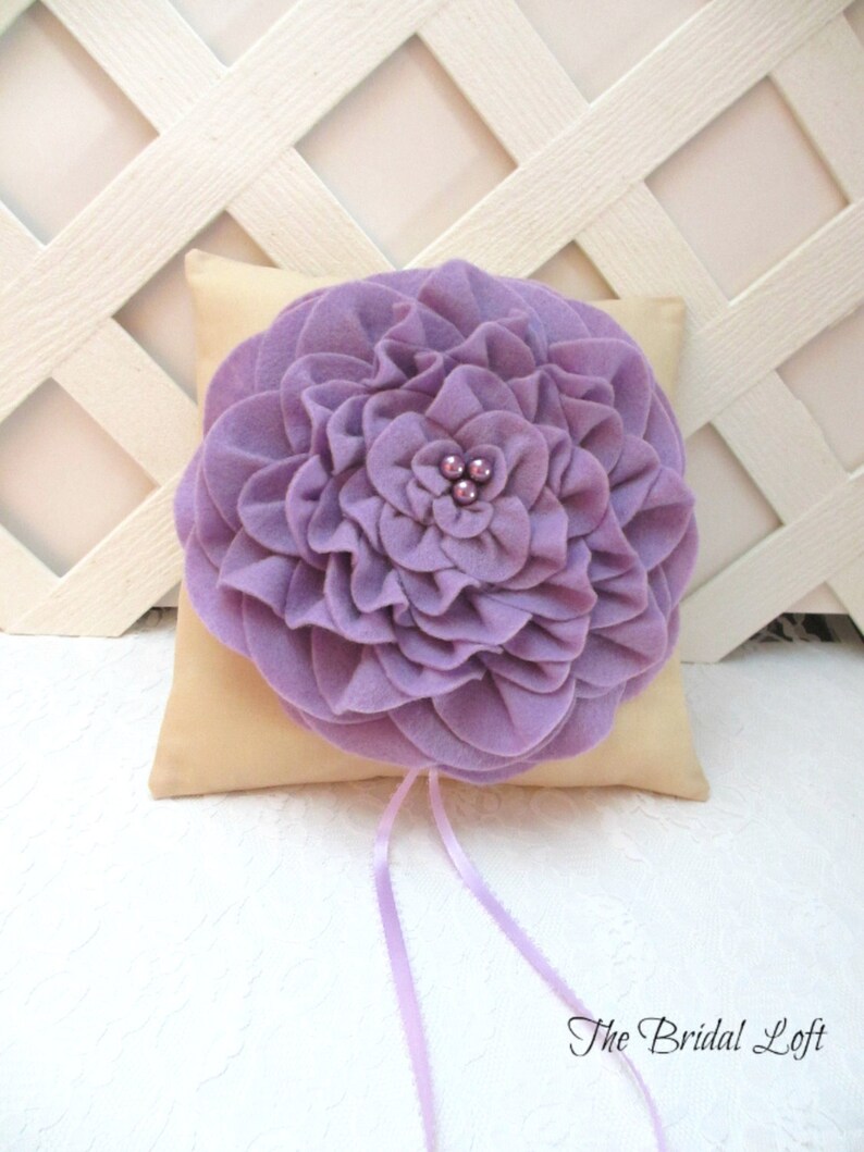 Lavender And Champagne Wedding Ring Pillow Purple Felt Flower Etsy