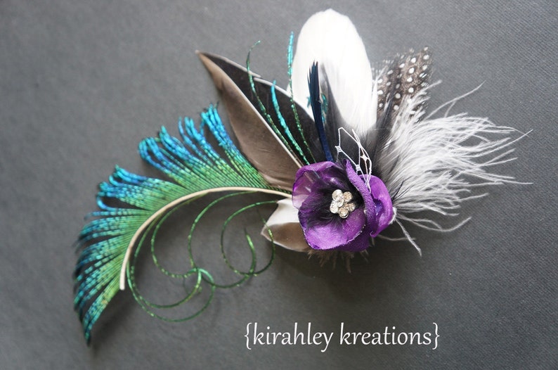 Purple Teal Peacock Feather Sword Clip Birdcage Veil Etsy
