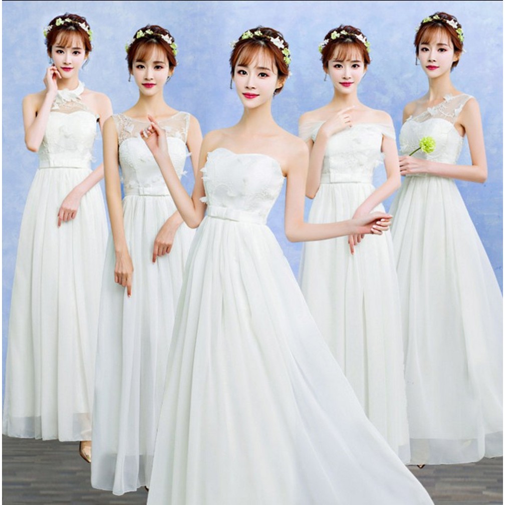 White Sweet Chiffon Lace Bridesmaid Dresses Long Wedding Maxi