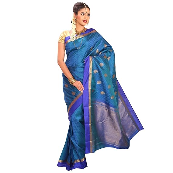 Bluish Green Peacock Blue Pattu Saree