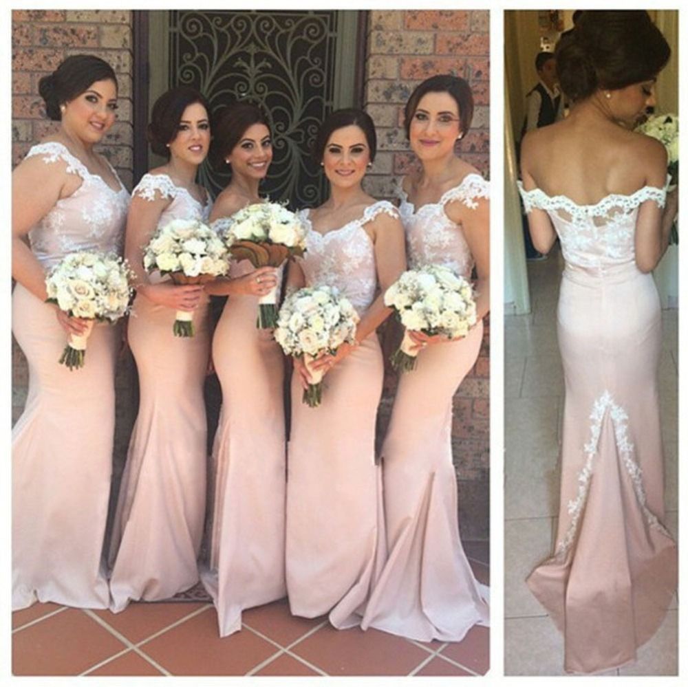 2019 Glamorous Mermaid Bridesmaids Dresses Long Boat Neck Cap