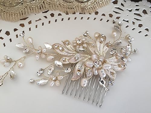 Amazon Com Bridal Hair Comb With Fresh Water Pearls Gold Plated