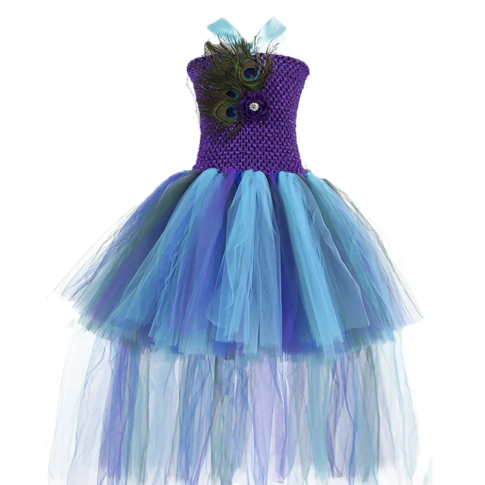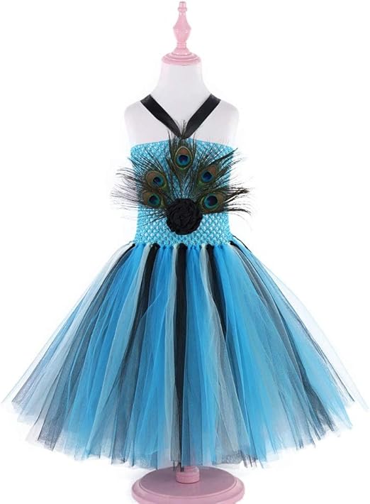 Feather Peacock Tutu Dress Kids Knee Length Birthday Wedding