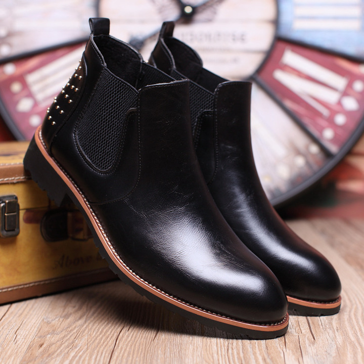 Rivet Black Men Loafers Flock Italian Men Shoes Casual Wedding