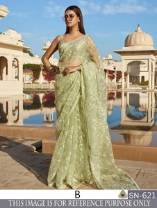 Deepmala Exports Glossy Majesty 15007 Green Net Embroidered Party