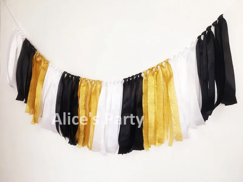 New Rag Tie Gold White Black Ribbon Banner 1st 30th 40th 50th 60th