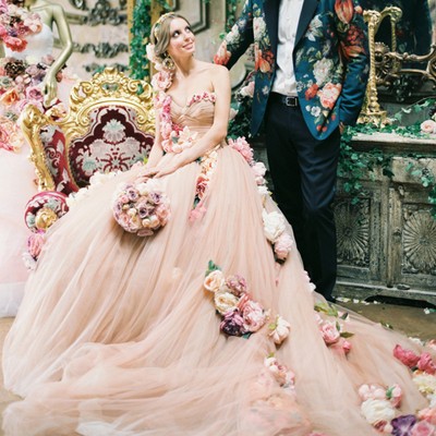 Multi Color Flowers Wedding Dress Floor Length Champagne Bridal