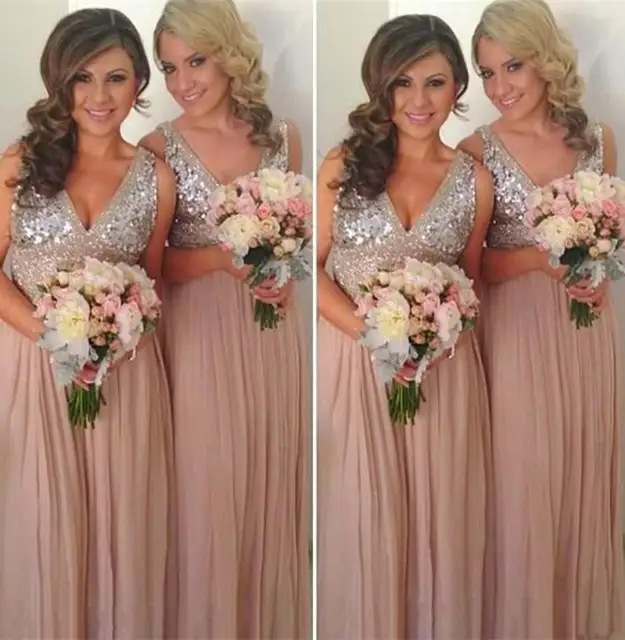 Sequined Bridesmaid Dresses Sheath Mixed Styles Dusty Pink Gold