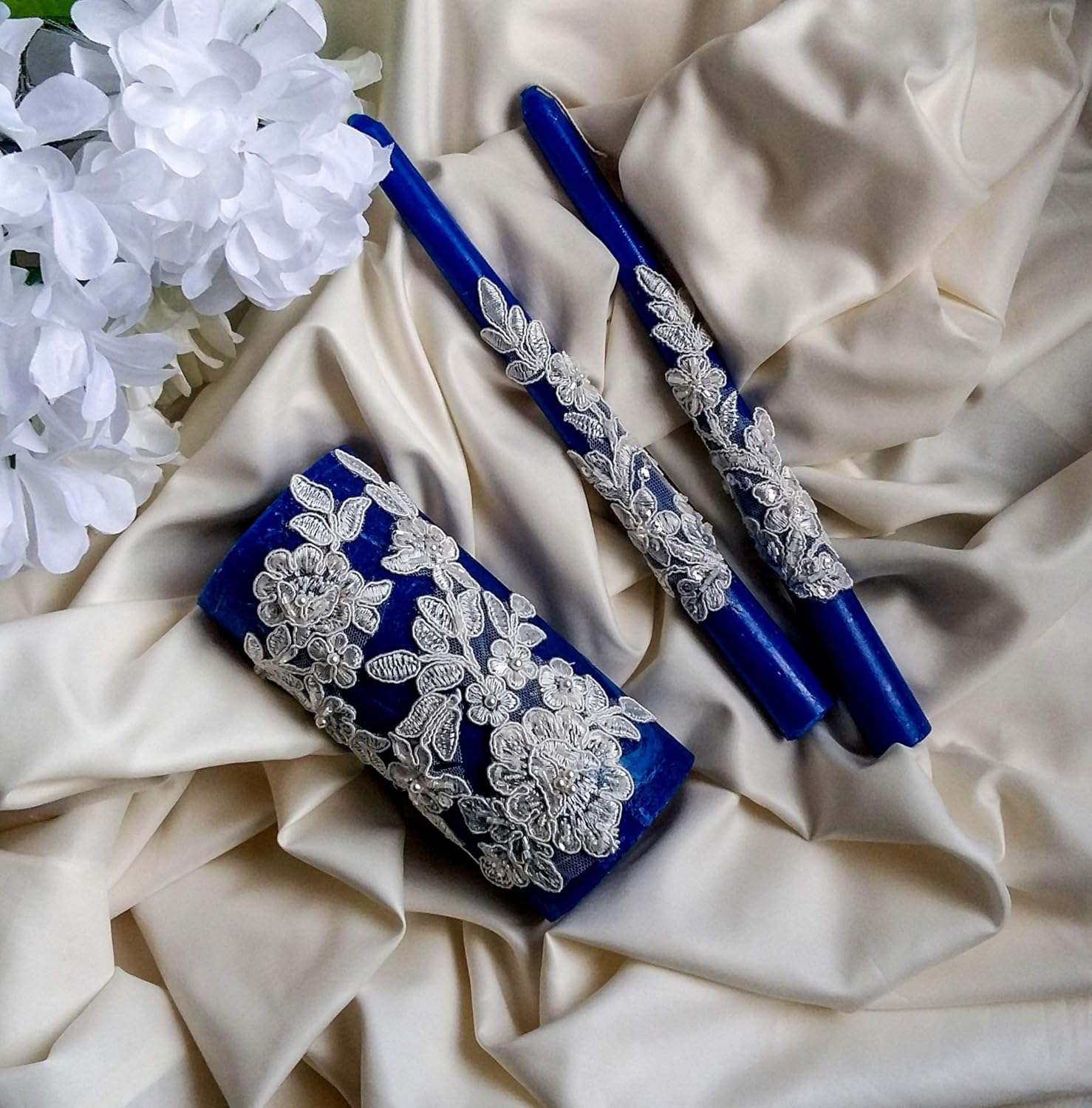 Amazon Com Navy Blue Unity Candle Set Lace Wedding Candle Set