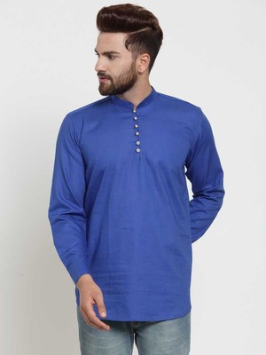 Indian Men S Shirt Wedding Wear Cotton Kurta Royal Blue Loos Fit