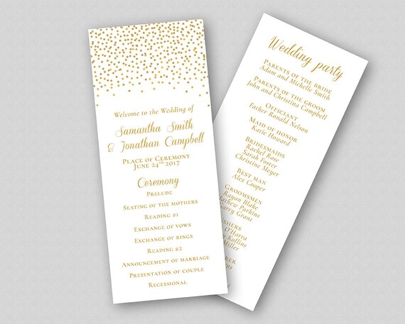 Wedding Program Template Gold Glitter Order Of Ceremony Etsy
