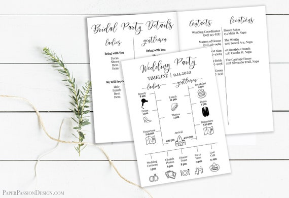 Wedding Party Timeline And Details Schedule Printable Etsy