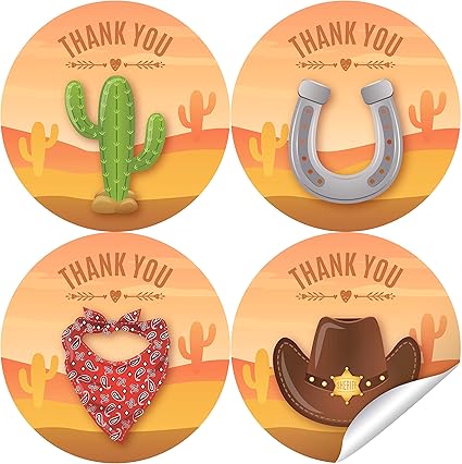 Amazon Com 2 Inch Cowboy Thank You Stickers Western Theme
