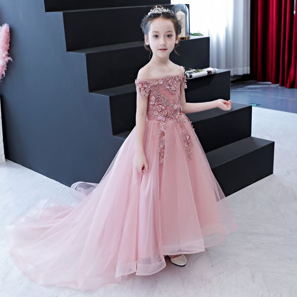 Fancy Flower Long Trailing Prom Gowns First Communion Dresses For